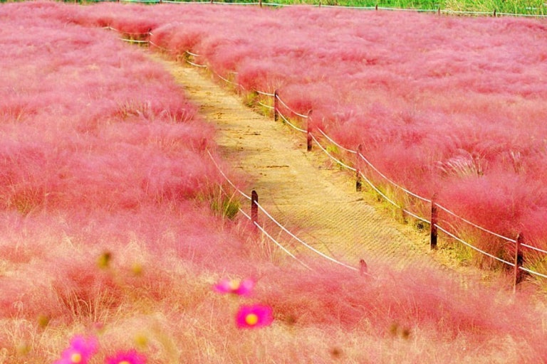 핑크뮬리뿐 아니라 코스모스, 댑싸리와 함께 다층적인 색의 조화를 즐길 수 있습니다.📌 입장료: 성인 10,000원 / 운영시간 09:00~18:00